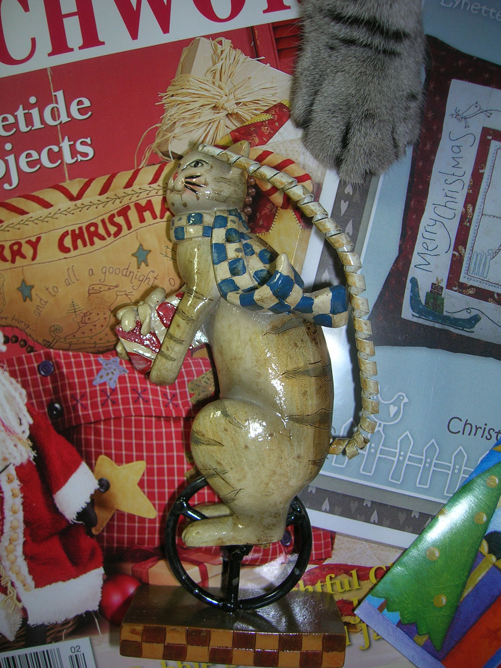 From my parents a Christmast isssue of an Australian qulting magazine, a pattern by Lynette Anderson, a very cute cat statue. The cat paw wasn't included in my presents ;o)